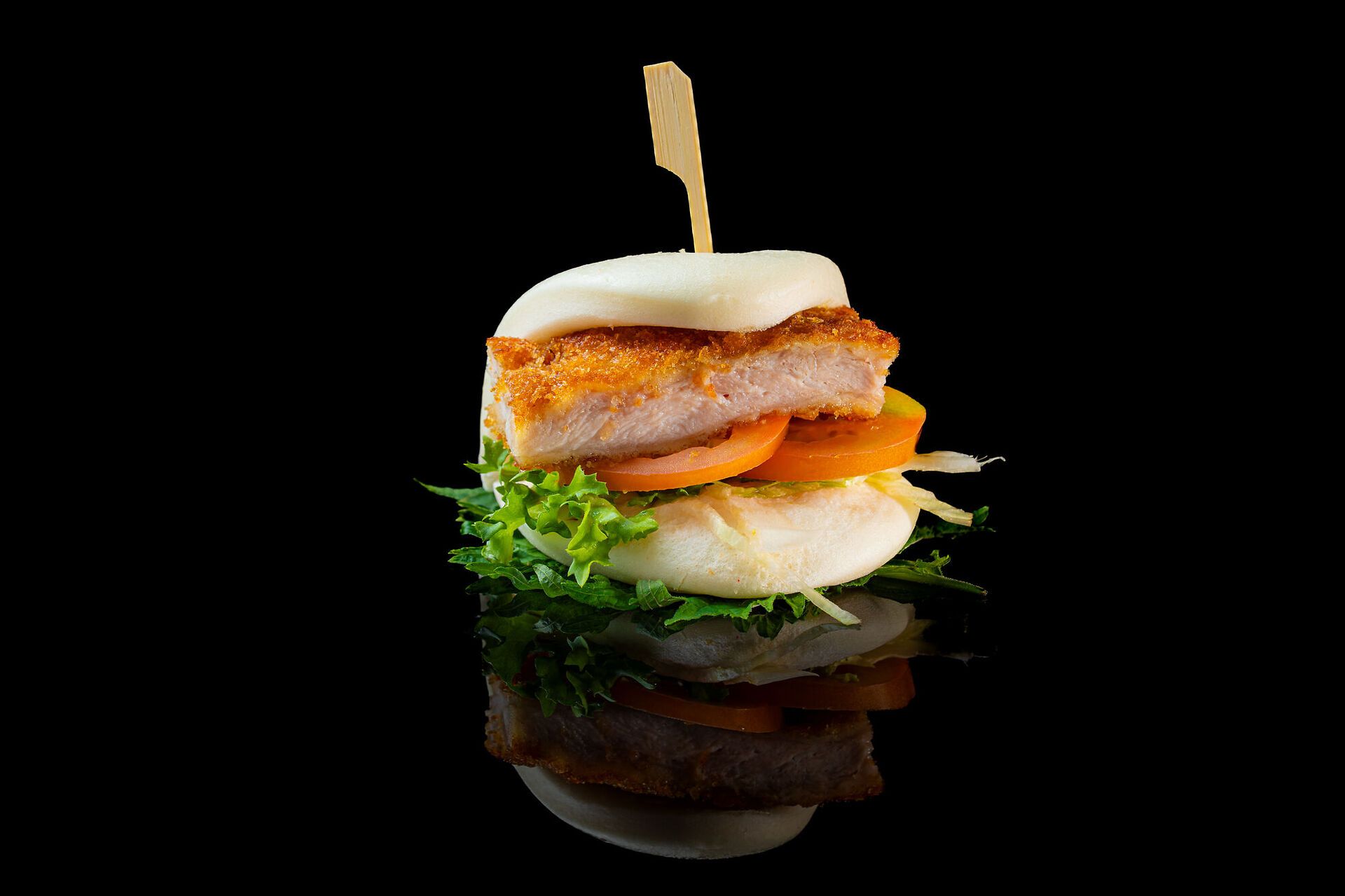 Pane cinese, verdure miste, pollo panato con salsa agropiccante
