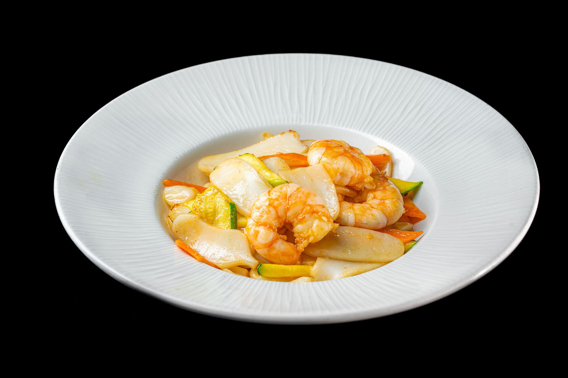 Gnocchi saltato con gamberi e verdure miste