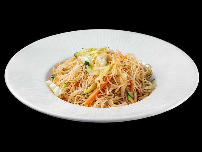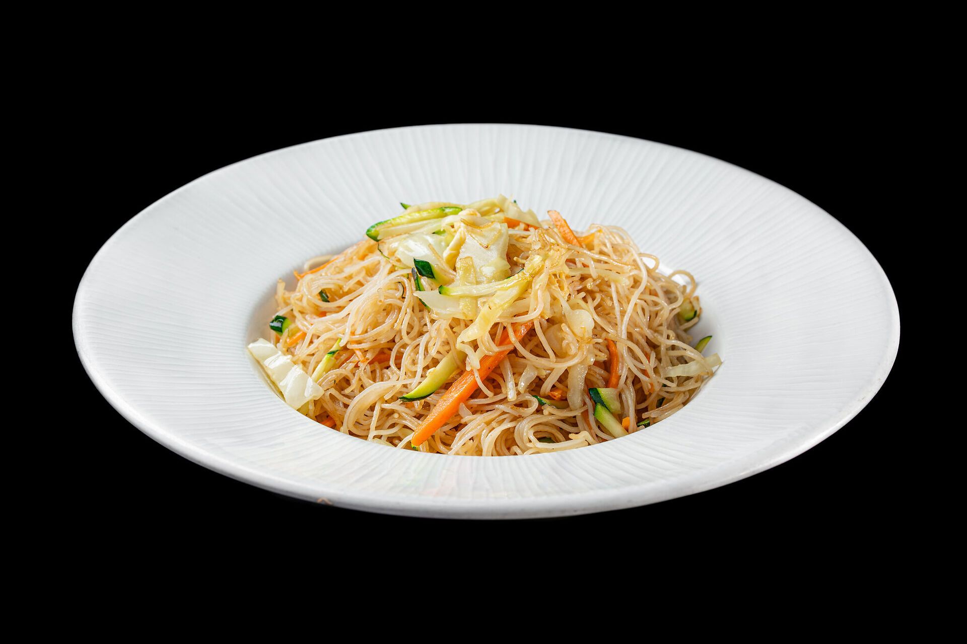 Spaghetti di soia con gamberi (mazzancolle), verdure miste