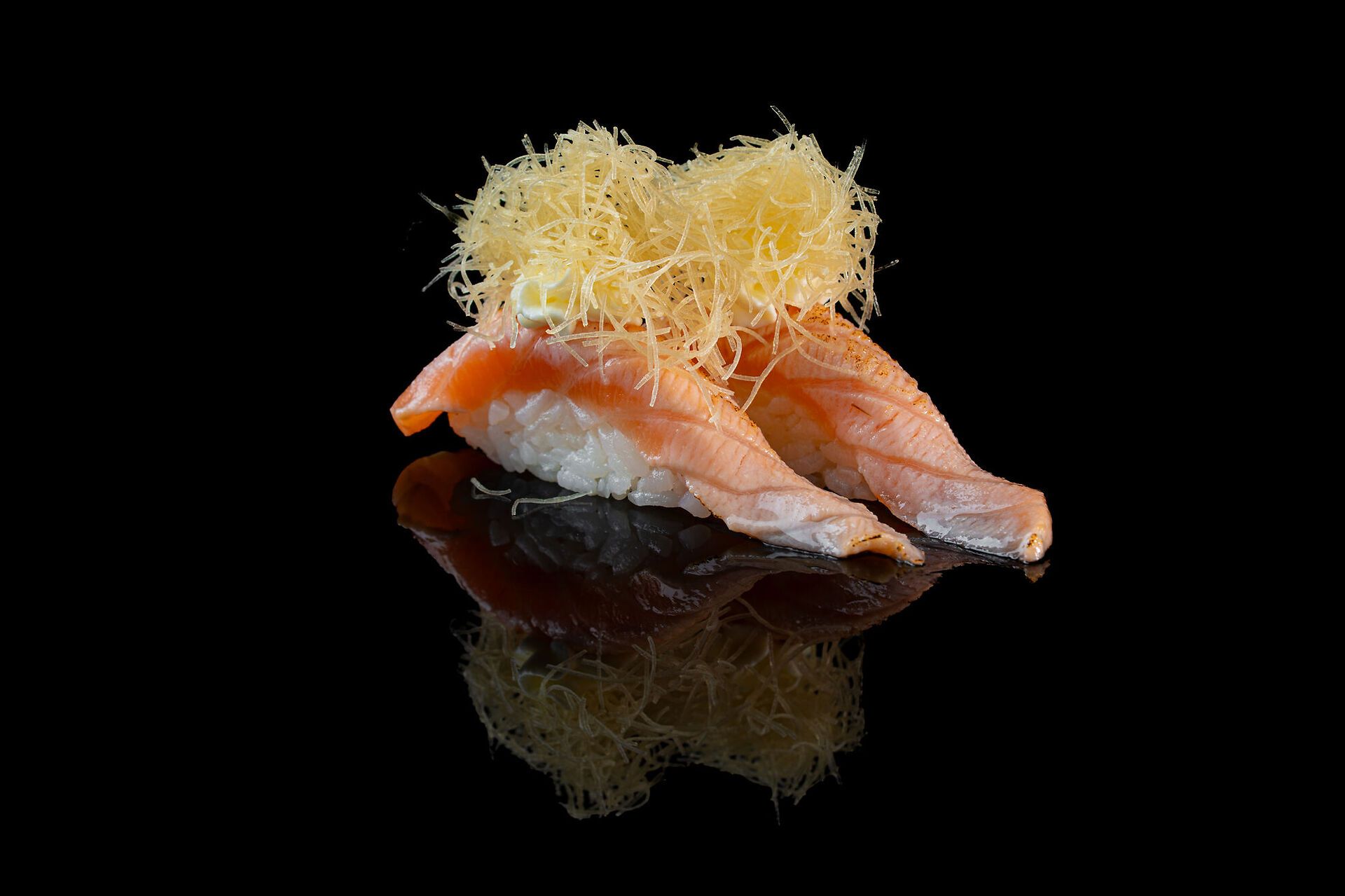Salmone scottato, philadelphia, kataifi e salsa teriyaki