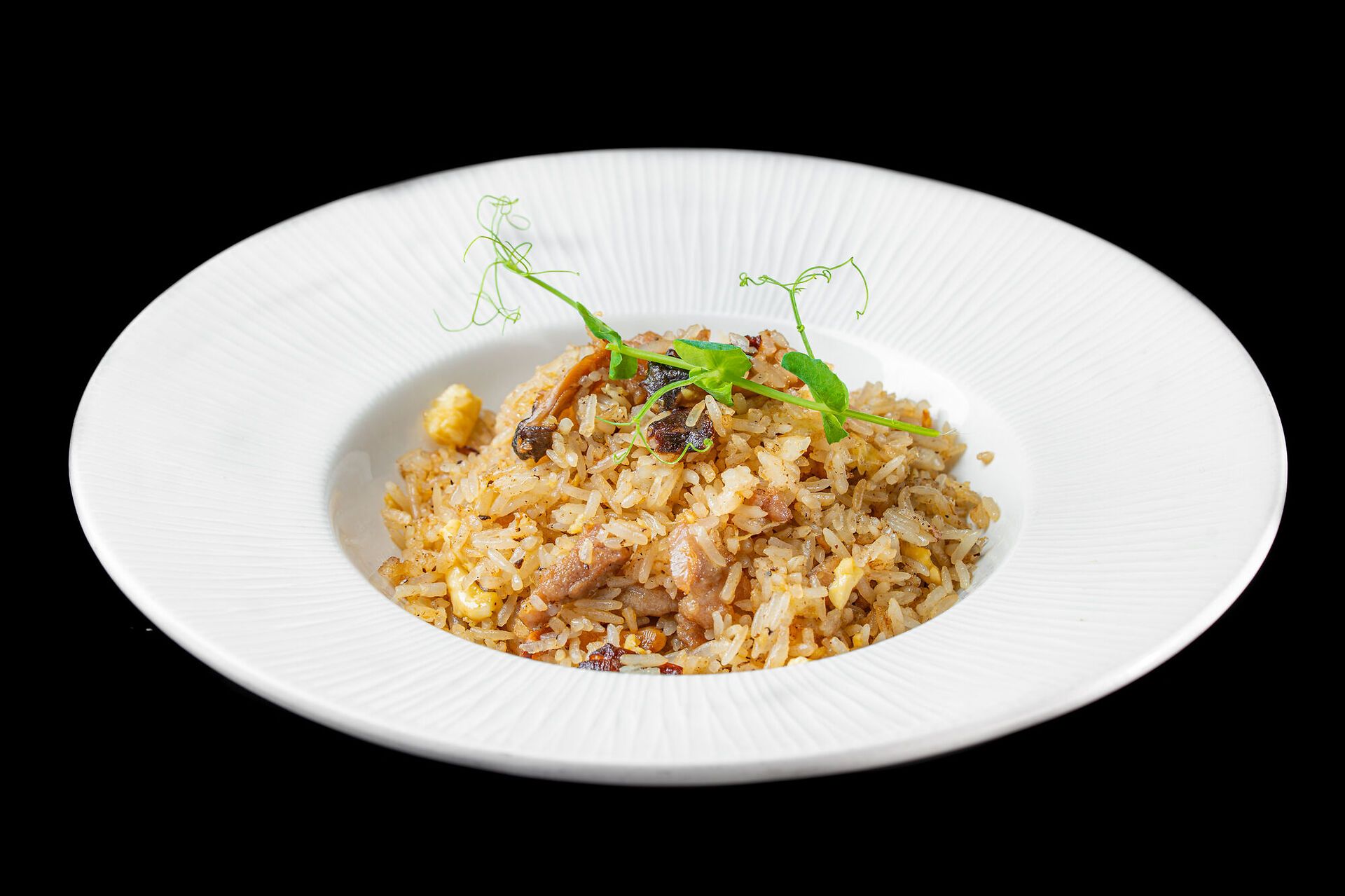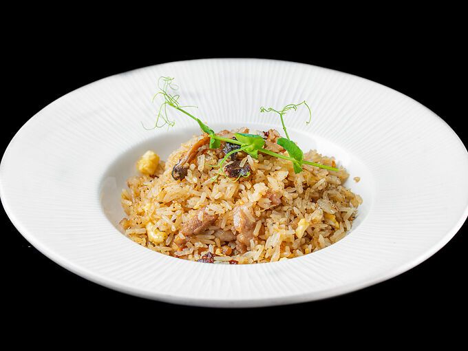 Riso saltato con vitello, tartufo nero, uova e olio di tartufo